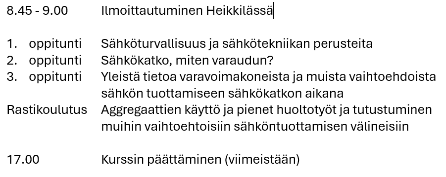 Kurssin jälkeen osaat käyttää alle 10 kVA:n varavoimakoneita ja tiedät, mikä ratkaisu sopii juuri sinun tarpeisiisi.